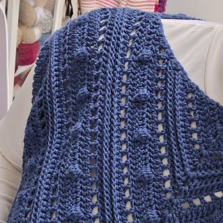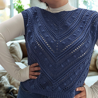 The Déjà Vu Vest is a versatile and timeless piece. You can crochet it in wool to keep you warm and cozy during the winter, or choose a lighter fiber to wear it as a breezy blouse during the summer.