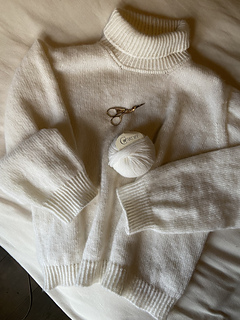 The sweater is worked seamlessly from the top down using the contiguous method for shoulder shaping. Body decreases create gentle waist shaping for a timeless silhouette. Sleeves are picked up and worked in the round. The fit is regular.