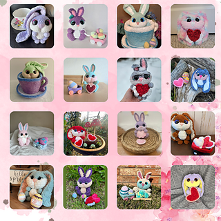 All the bunnies are INTERMEDIATE level patterns. You should be comfortable with: face shaping on a partially open head, lots of sewing, and working around a foundation chain. The accessories range from BEGINNER (eggs)-> ADV BEGINNER (hearts, teacup & saucer) -> INTERMEDIATE (wagon).