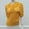 MATERIALS: 7 skeins “Sun Glo” Shrinkproof 3-ply fingering wool, shade No. 2185 (maize), 2 pairs needles Nos. 10 and 12, 4 button moulds.
