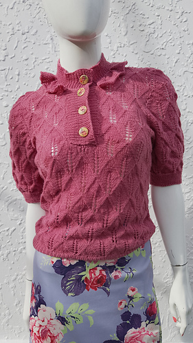 MEASUREMENTS: Length from top of shoulder, 20 inches; bust, 32/34 inches; length of sleeve seam, 4½ inches.