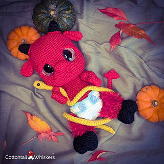 Introducing Beezleboo Fluffbutt the Devil Baby with Wisp. Light up your nights by the fire with our adorable red devil imp in it’s own nappy/diaper and Wisp included. Clearly written amigurumi pattern photo tutorial with step by step guide notes to create your very own serving of smoking hot mischief.