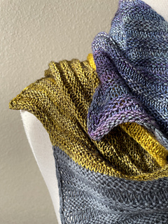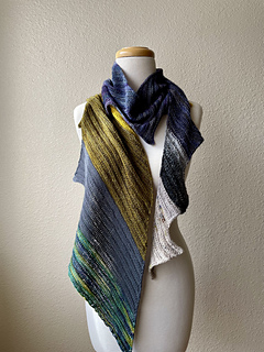 Gauge is 22 sts and 40 rows over 4”/10cm of pattern as written. Gauge is important for dimensions and yardage estimates, but not for fit. It’s just a scarf. Or a shawl. I may be overthinking the scarf/shawl thing a bit.