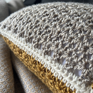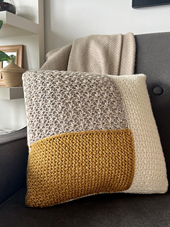 The 16”x16” pillow is made up of three sections per side that are crocheted together (no sewing).