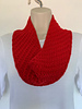 I’m thrill with this result. The pink example was my first test using some yarn I bought on clearance at Joann’s – The Hook Nook Small Stuff – it’s acrylic in a DK weight. The red cowl was also knit in DK cotton/acrylic blend, Sun City by Schachenmayr, but it’s a tighter twist, almost a sport weight. I also tried starting one using a variegated yarn, but the beautiful stitch pattern got lost in the color and I frogged it, so I do recommend using solid colors or maybe a tonal or lightly speckled colorway.