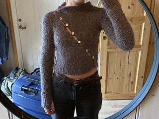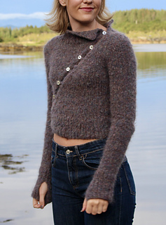 Diagonal cardigan er en kroppsnær strikkejakke som kjennetegnes av en skrå knappestolpe som går fra midjen og opp mot halsen. Designet har en bred vrangbord nederst på bolen, ved ermene og rundt halsen, som gir et stilrent uttrykk. Ermene er ekstra lange og har tommelhull, noe som gir både varme og et moderne preg.