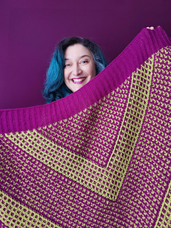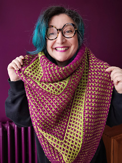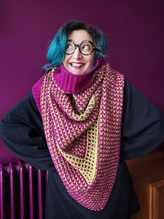 The diamond motif looks like a collection of short sticks on the wrong side, and the shawl is fully reversible.