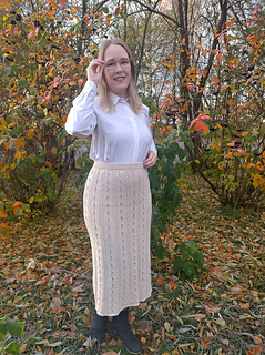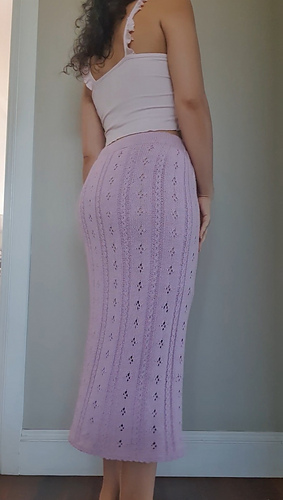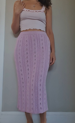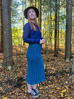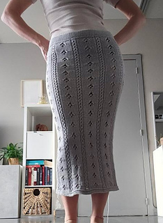 This beautiful fitted mermaid style lace skirt features a bit of lace and a bit of faux cables that go together to wonderfully. There is a tiny edging of crochet, but the pattern also has a similar edging that can be knit and sewn on, but learn the crochet, trust me, crochet and knit are a beautiful combo.