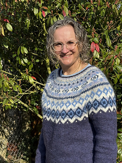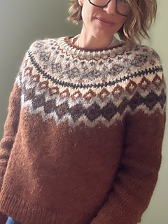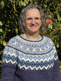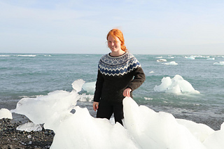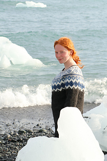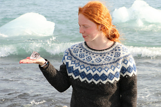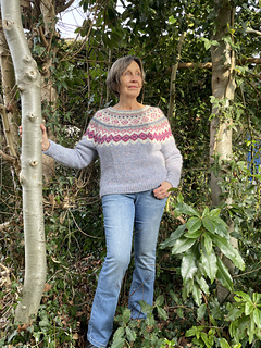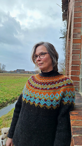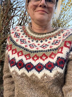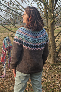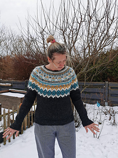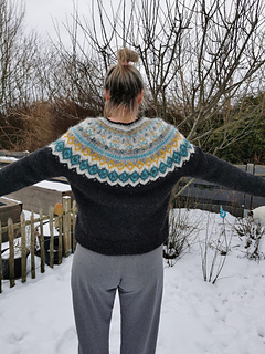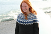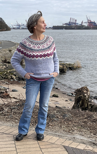 The Diamond Beach is knitted seamless top down and has a circular yoke. The neckline ribbing is knitted first. The stranded yoke is mainly knitted in two colors, with a few rows in three colors. Short rows below the yoke make the neckline slightly deeper at the front. There is an optional waist shaping for a better fit.
