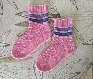 The socks are knitted top down, with a heel flap and gusset and the textured pattern is charted only.
