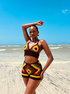 These unique crochet shorts are constructed on a diamond-shaped base that is later intentionally shaped into a pair of shorts, giving them their one-of-a-kind structure and perfect fit. Designed using the classic granny stitch, they embrace that timeless crochet charm while allowing for endless creativity with as many colors as you wish — from vibrant rainbow hues to soft, pastel blends.