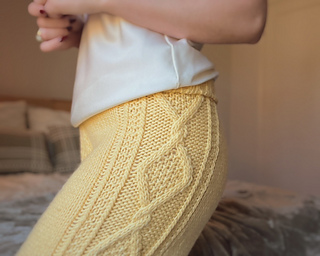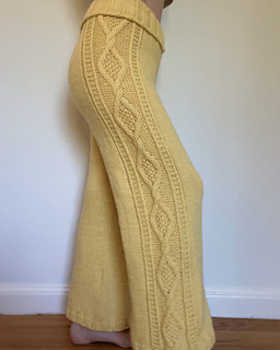 The Diamond Pants have a wide leg fit with cables along the sides. Short rows are worked at the beginning to provide a better fit and the pattern is worked top-down, seamlessly in the round. These are perfect for cold nights due to the chunky yarn used in this pattern which also makes this a quick knit for such a large project!