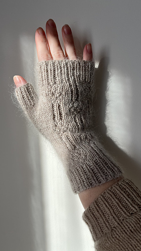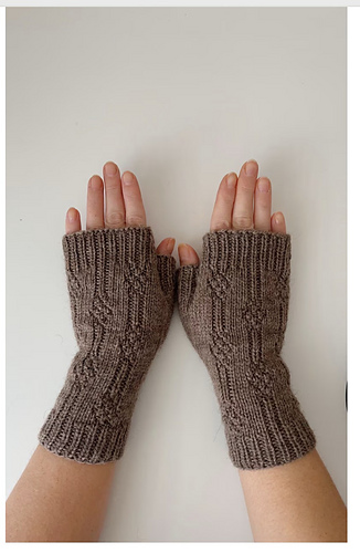 Diamond Path Mitts are simple fingerless gloves knit from the cuff upward, featuring a classic thumb