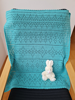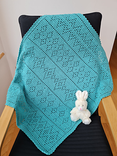 The pattern is very easy for beginners as there are no unusual or difficult stitches to master. The pattern contains written instructions with full stitch counts for every row of each panel of the blanket, as well as a complete chart.