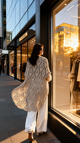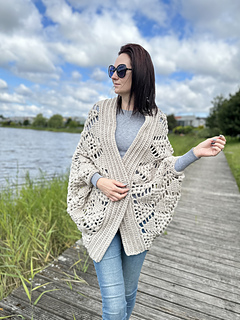 The entire cardigan is created from a simple rectangle, making it an accessible and enjoyable project for crocheters who love straightforward yet impressive designs.
