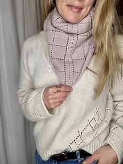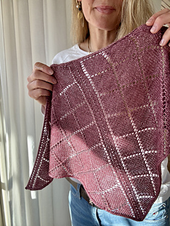 Diamond Line Scarf is a feminine and elegant scarf featuring the characteristic diamond pattern from the DiamondLine series. The refined diamond pattern creates a light and airy look. The scarf is worked in a single strand of cashmere/silk from Aknittersworld, resulting in an exceptionally beautiful, lustrous, and soft scarf.