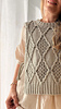 Sleeveless split-side vest featuring a geometric diamond pattern with its interplay of solid and lacy spaces. Lovely for layering over just about anything from easy breezy tops and bottoms to a fitted tanks.