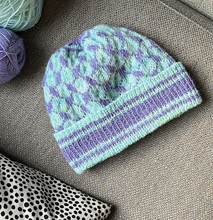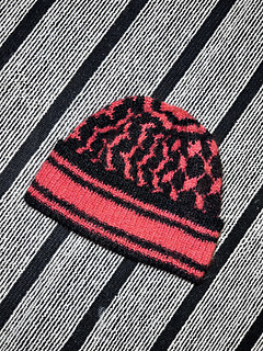 Strikkeoppskrift som veileder deg til å strikke Dignity Beanie, en lue med mønster hentet fra det tradisjonelle sjalet keffiyeh.