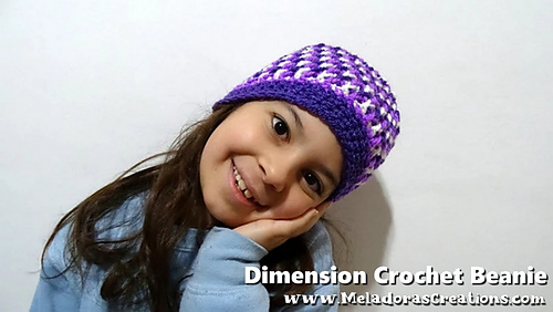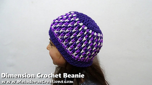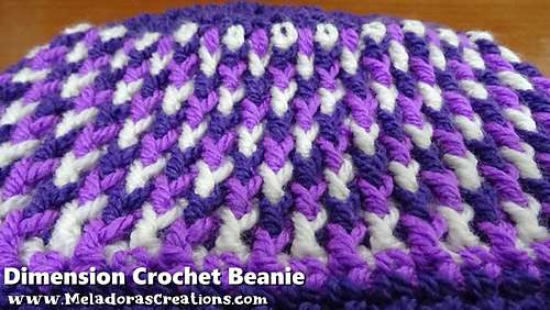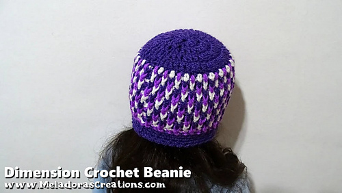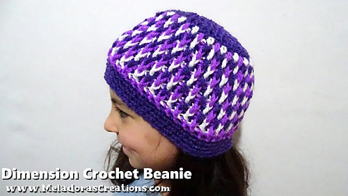 This Crochet pattern teaches how to make a beanie using the Dimension Stitch. Sizes baby to adult. Also see below for link to how to do this stitch in rows.