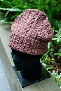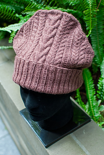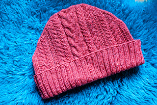 The Dimer beanie has all over cable and texture stitches that give the design a maximalist look. The crown shaping also provides the hat with a sleek silhouette and the crown sticks up above the wearer’s head. The cable and texture patterns are easy to follow and engaging with written instructions and charts for all of the sizes.