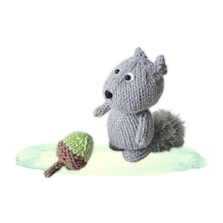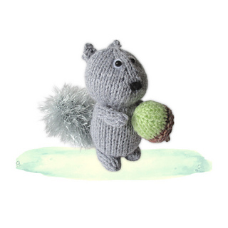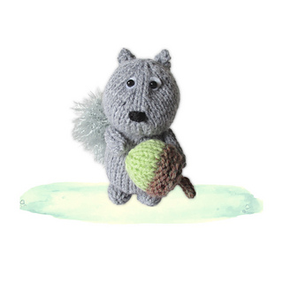 This dinky grey squirrel is gathering acorns for their supper. The tail is knitted in an eyelash yarn to make it extra fluffy!