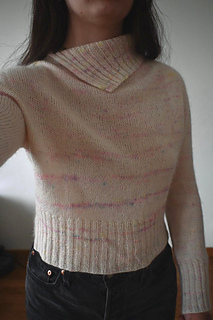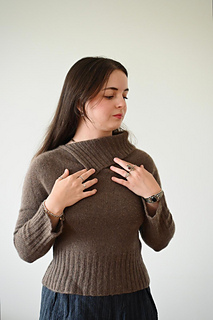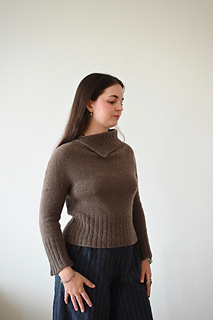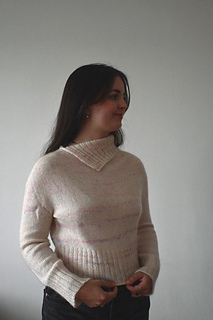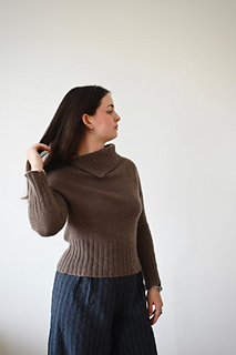 The Dira sweater is an elegant garment with delicate and refined lines, featuring a high neckline that opens on one shoulder, creating an intriguing play of diagonal lines. Knitted using the Top-Down technique, it showcases a saddle shoulder detail that adds structure and definition to the design. The close-fitting silhouette and high borders lend a modern and sophisticated touch, making this sweater a versatile piece.