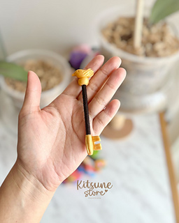 El muñequito mide aproximadamente 15 cm (sin sombrero). Su forro interior está pintado con técnica de pincel seco e incluye máscara, bastón, espejos y hombreras.
