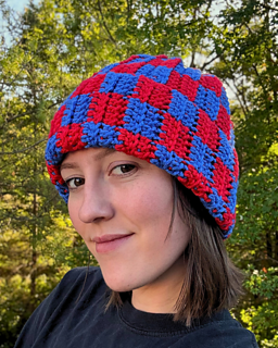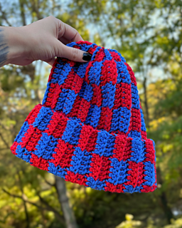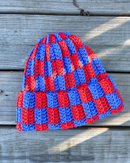 Beginner-friendly checkered ribbed crochet beanie pattern.