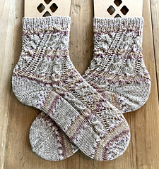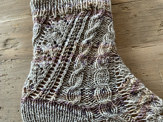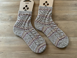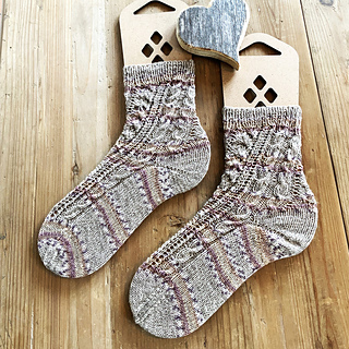 „Dizzy“ sind Socken, die sich durch ein auffallendes Muster in Szene setzen. Das Muster sieht komplizierter aus als es wirklich ist. Der schräge Verlauf entsteht mustergemäß von ganz alleine. Die Socken werden von oben nach unten gestrickt. Die Grundlagen des Sockenstrickens sollten bekannt sein. Ich habe die Ferse als Bumerangferse gearbeitet und eine Bandspitze gestrickt und beschrieben. Ferse und Spitze können jedoch auch anders ausgeführt werden. Es sind Angaben und Charts für die Größen 36 bis 47 gemacht. Andere Größen sind einfach möglich, indem man linke Maschen zwischen den Musterstreifen hinzufügt oder entfernt.