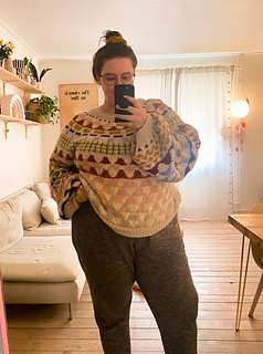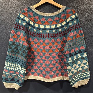 Seamless and knit in the round from the top down, you will be constantly amused by the changing patterns as you knit. The shape is modern and loose, with a slit at the back neck ribbing to ensure a relaxed neckline, the cropped body is balanced out with generous sleeves that taper at the cuff, by knitting visible decreases into the ribbing. The omission of Short Rows keeps this sweater simple and fuss- free!