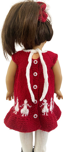 Construction of the dress: The dress knits flat with a back buttoned closure. The sleeves are created by casting on extra stitches at the armholes.