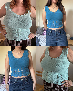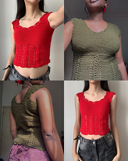 Dolly top is a dainty everyday essential that can be dressed up or down. The Dolly Top pattern is written in English, uses US Crochet Terminology, and is suitable for advanced beginners. The pattern is made to personal measurements, it can be recreated to fit any measurement.