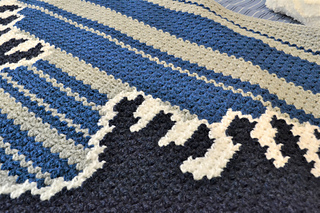 The blanket is made using a simple stitch repeat. The pattern has a couple different formats that you can follow. It includes a color chart in 2 sizes: one page for a quick print off and go option or a 4 page enlarged format for easier tracking and viewing. There is also a written format that includes how many stitches to crochet in each color. This can also be used as a way to double check your work.