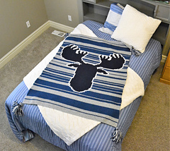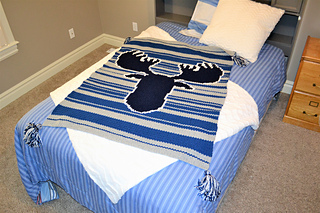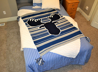 The Don’t Moose with Me Crochet Blanket Pattern is a fun oversized throw blanket. The silhouette of the moose is defined with an outline that makes it pop. The design is only emphasized with the stripes in the background.