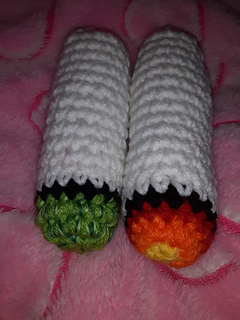 Here is my crochet Doobie cat toy pattern! Made with a Fabric liner and catnip, Mess free and your kitty will not be able to pull the Stuffing out and the catnip lasts longer! Super easy to make, made with single Crochets and a G hook I use all different colors of 4 ply yarn and just went creative with it! Perfect to use up yarn scraps and cats love them! Perfect Gifts too Well written pattern with pictures and captions and it has instructions on how to make a 3 color lit tip and solid color tip! And takes less than a hour to make You will love this pattern!