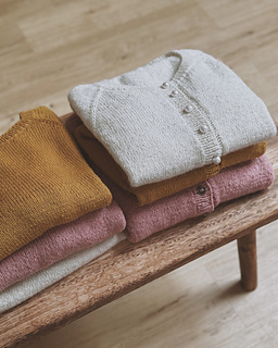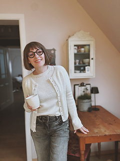 The Doorli Cardigan knitting pattern is a timeless, seamless top-down design with a flattering neckline and a feminine fit. The cardigan can be worn open or buttoned and pairs perfectly with the matching Doorli Shortsleeve for a classic twinset look.