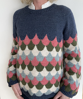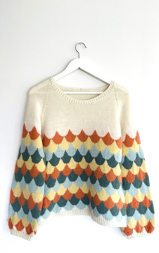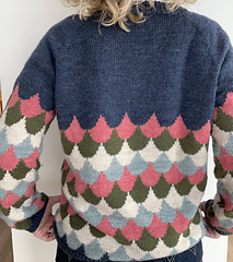 Doris is a timeless colourwork sweater with a clean silhouette and a playful Nordic touch. The repeating pattern creates rhythm and movement across the yoke, while the simple body and sleeves let the motif take center stage.