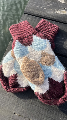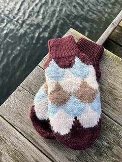The mittens are knitted from the cuff upwards. They have a classic fit and are worked in stockinette stitch with stranded colourwork.