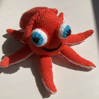 Hank the octopus is knitted flat and then seamed together using mattress stitch.