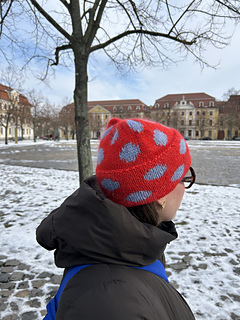 Die Dotty Beanie ist eine verspielte Mütze mit Punktmuster, die im Stranded Colourwork gestrickt wird. Sie eignet sich gut als erstes Projekt, um sich an Colourwork heranzutasten. Die Mütze wird in Runden gearbeitet und hat einen klassischen Umschlagrand. Sie ist sehr flauschig und ein schöner Begleiter für den Winter. Durch die bunten Punkte bringt sie etwas Farbe in die kältere Jahreszeit. Ein schnelles und unkompliziertes Projekt, das sich problemlos an einem Tag fertigstellen lässt.