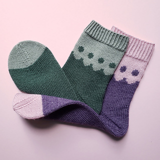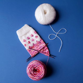 This compact, no-frills pattern is suitable for advanced knitters with experience in sock and colourwork knitting. It contains everything you need to knit the design from cuff to toe - tables and descriptions in text form as well as knitting charts for all sizes.