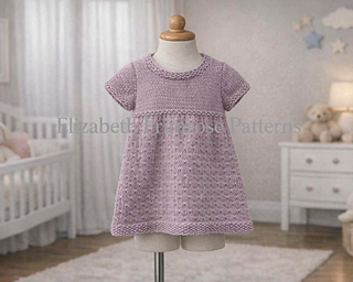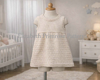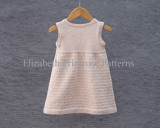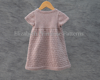 The dresses have an easy-to-knit, repeat dotty pattern and a moss stitch hem. The front and back are knitted separately and sewn together. The moss stitch neckband is added by picking up stitches. You then have the option of either short sleeves which are knitted separately and sewn onto the dress or picking up stitches for a moss stitch armhole edge band.