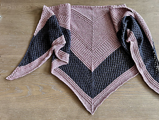 This is a DK weight yarn version of my Euphoric Shawl. I put in my favorite elements of shawls. It is a top-down triangular shawl, full of texture.