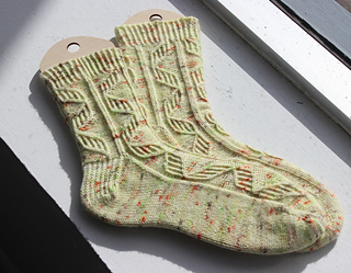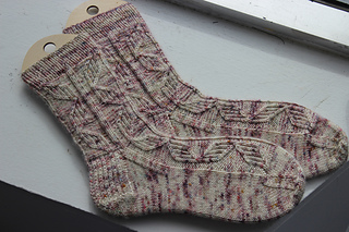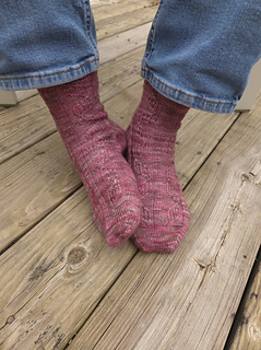 Many knitters prefer to knit toe up socks while others are strictly cuff down connoisseurs. This pattern has the best of both worlds. The toe-up pattern is on pages 5-6 of the pattern and the cuff down pattern follows on pages 7-8. Undecided? Try them both!! The double helix stitch pattern is shown in both charted and written formats.