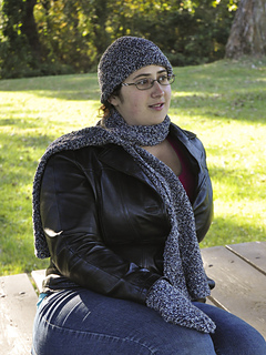 This is a hat, scarf and mittens made with the double moss stitch pattern. These are light pieces suitable for a crisp fall day, or work them in a heavier yarn and smaller needles for a tighter, warmer set of garments.