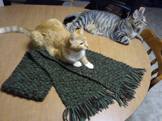 Something I came up with using double moss stitch with double strands of contrast colors!