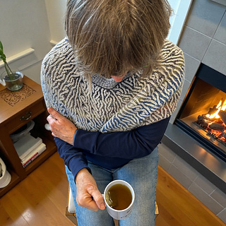 A shrug that not only warms, but envelops you—knitted in the sumptuous softness of French Brioche, where every stitch is a breath of light and comfort.