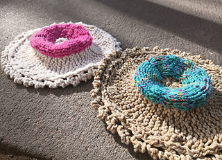 While doing an internet search I learned fancy doughnuts are the new trend in weddings as a way to avoid the expensive cake cost. They are served on doilies to make them elegant…I thought…“I could make that!” adding to the “just because you can knit something..should you?” question. But it is a fun whimsical knit. Washcloth is worked sideways using short rows with a provisional cast on and Kitchener stitch.