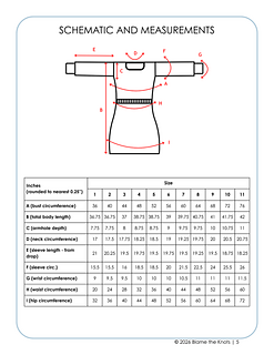 1, 2 (3, 4, 5) (6, 7, 8) (9, 10, 11) with a finished bust circumference of 36, 40 (44, 48, 52) (56, 60, 64) (68, 72, 76)” / 90, 100 (110, 120, 130) (140, 150, 160) (170, 180, 190) cm