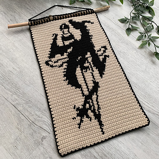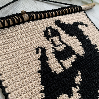 The final tapestry size, with the recommended materials, will be about 36x25,5cm (14.2” × 10”).